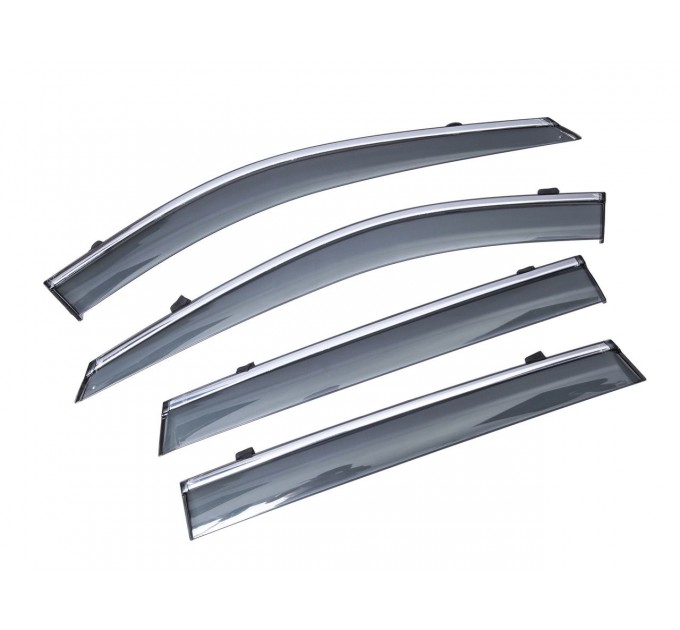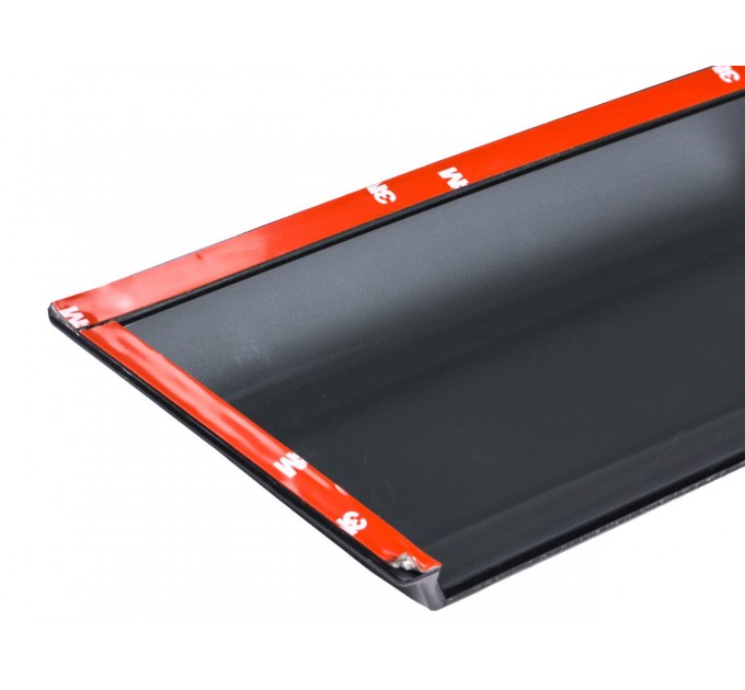 Прозрачные дефлекторы изготовлены из высококачественного акрила. Крепятся на двухсторонний скотч, и дополнительно фиксируются тремя металлическими фиксаторами. Легко устанавливаются и идеально прилегает к рамки двери.